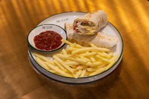 Sote dana Eti, Cafe de Paris sos, Iceberg, Patates Kızartması (ekmek içinde), Yeşil Salata....